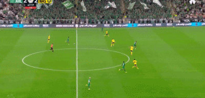第44分钟,阿姆里头球破门上演梅开二度,帮助利雅得胜利连追2球。