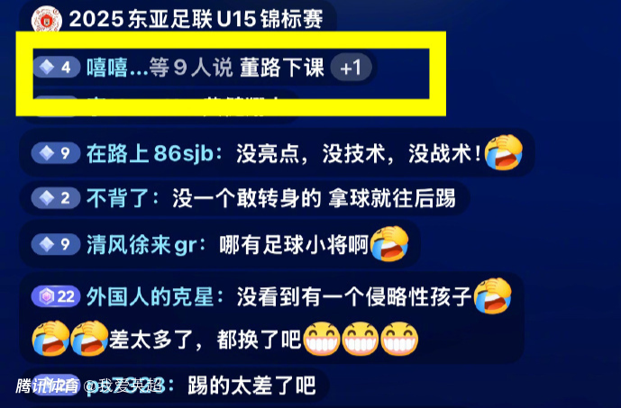 或许是不满国少的表现,而且还是大比分输给日本,直播间里,有不少球迷刷屏怒喊“董路下课”。众所周知,董路的足球小将目前是U15国足年龄段的重要力量,显然在球迷看来,董路培养的足球小将实力也不过如此。