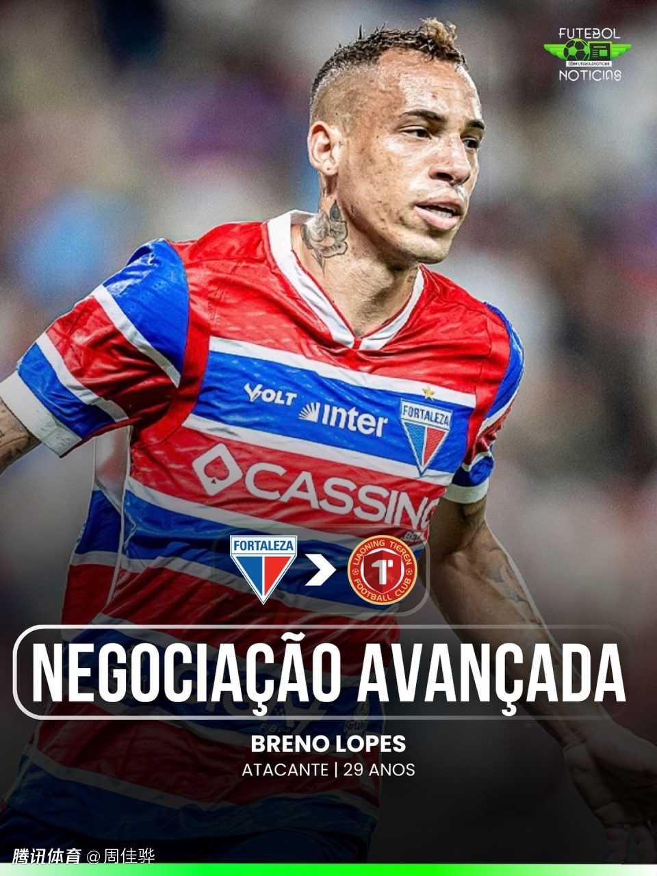 2025赛季,布雷诺·洛佩斯迎来爆发,他在各项赛事出场52次,斩获10粒进球和7次助攻,虽然福塔莱萨不幸降级,但他个人的表现,还是得到了一致认可。据巴西《环球体育》透露:辽宁铁人曾就个人待遇与布雷诺·洛佩斯达成一致,但在与科里蒂巴的竞争中,还是败下阵来。