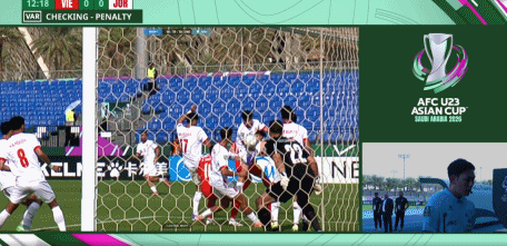 第15分钟,VAR介入,判定塔哈手球送点,阮庭北操刀得手,越南1-0。