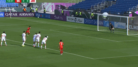 第42分钟,越南队角球送到后点,阮晓明推射建功,2-0领先约旦。