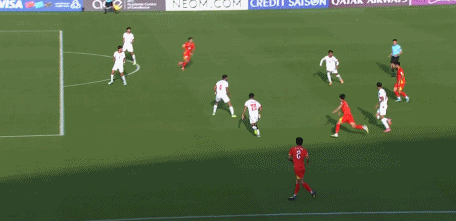 第2分钟,屈文康前场拿球转身后远角,被约旦门将飞身扑出底线。