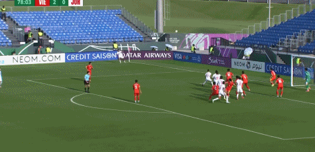 第42分钟,越南队角球送到后点,阮晓明推射建功,2-0领先约旦。