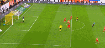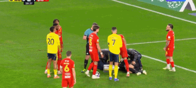 第63分钟,利雅得胜利射手安热洛凶狠冲撞对方比利时国门卡斯特尔斯,后者随后被担架运下场。
