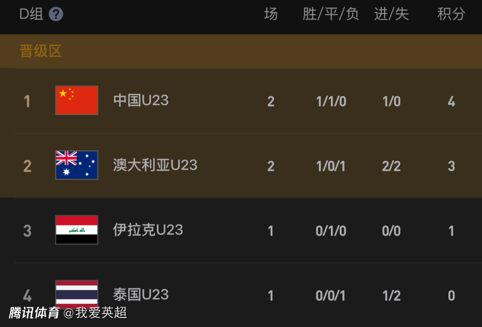 U23国足斩获本届U23亚洲杯首胜+历史第3胜,开局2轮不败积4分,暂时升至小组头名。澳大利亚1胜1负积3分,暂列第2位;14日19点30分,U23国足将迎来小组最后1个对手泰国队。