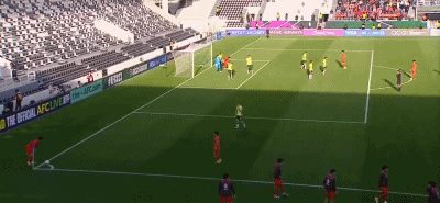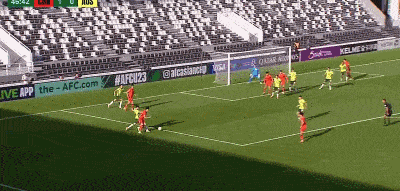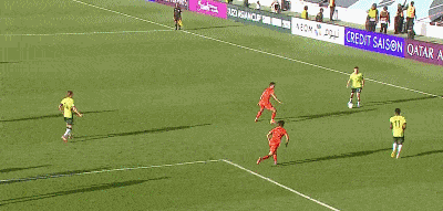 补时阶段,澳大利亚绝平球因为手球在先,被吹无效。