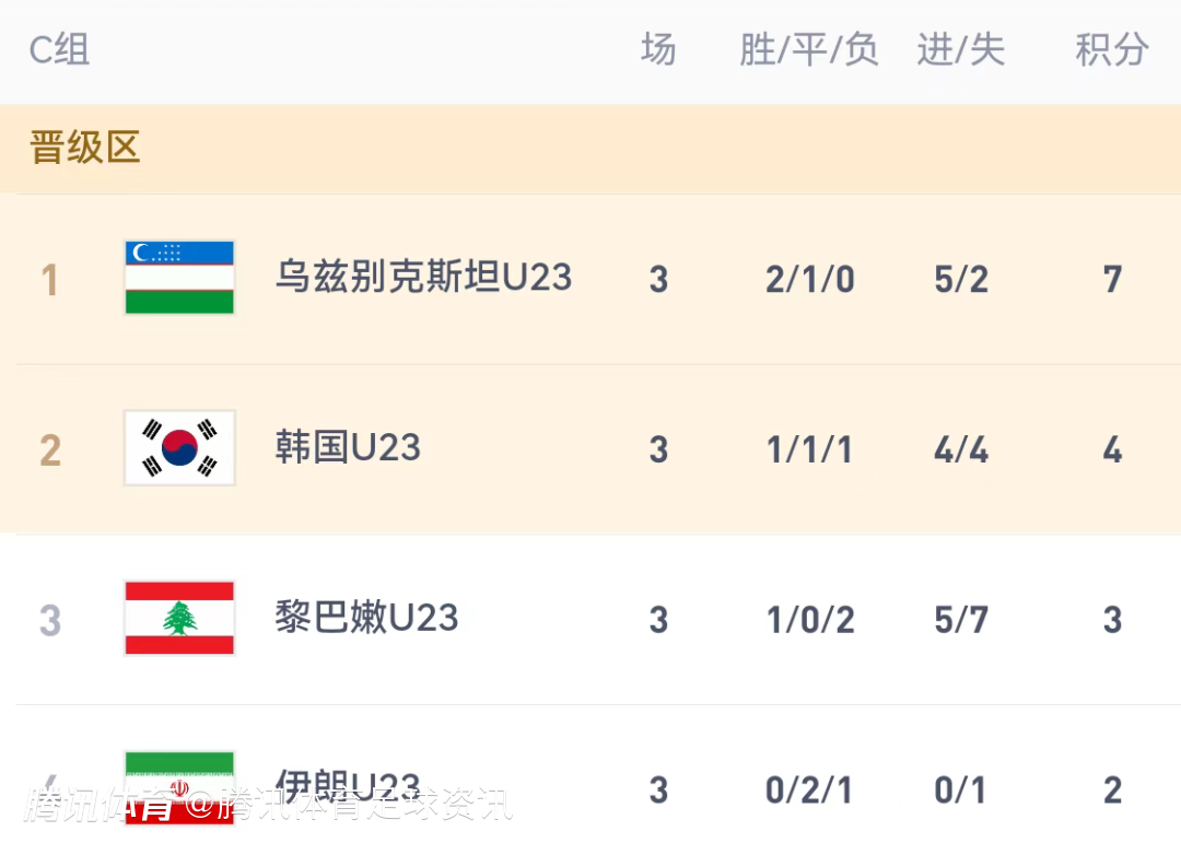 小组赛C组:乌兹别克斯坦U23、韩国U23晋级