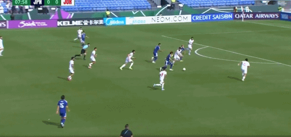 第9分钟,日本队前场连续配合后射门,但约旦门将发挥出色将球扑出。