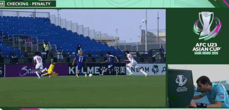 第65分钟,古⾕柊介突入禁区被塔拉尔加绊倒,主裁判判罚点球,但回看慢镜头之后取消点球。