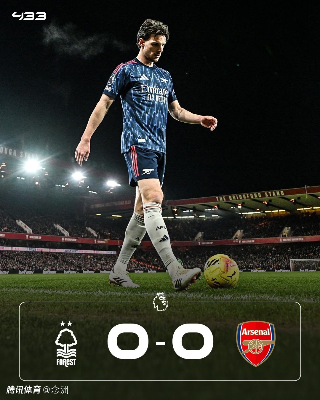阿森纳客场0-0战平诺丁汉森林,以7分优势领先曼城,高居英超榜首。马丁内利错失一次破门良机。森林门将塞尔斯做出多次关键扑救。