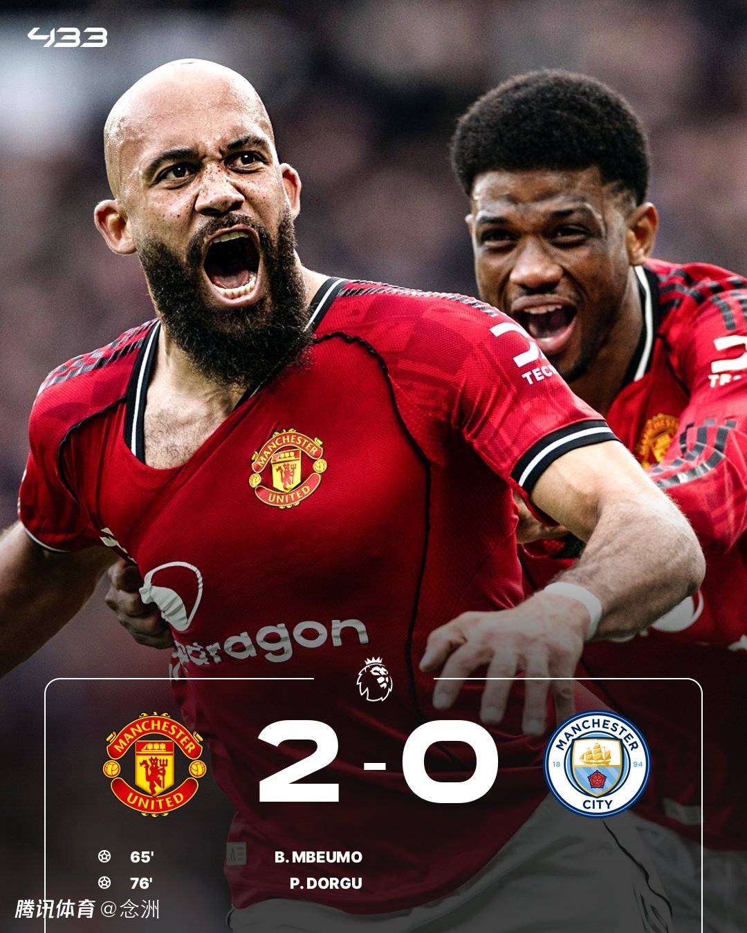 英超第22轮迎来曼市德比,曼联主场2-0完胜曼城。马奎尔头球中框,阿玛德和B费先后进球被吹,多纳鲁马多次神扑,姆伯莫打破僵局,多尔古扩大比分,阿玛德再中立柱,芒特补时登场破门但经VAR回放后取消。