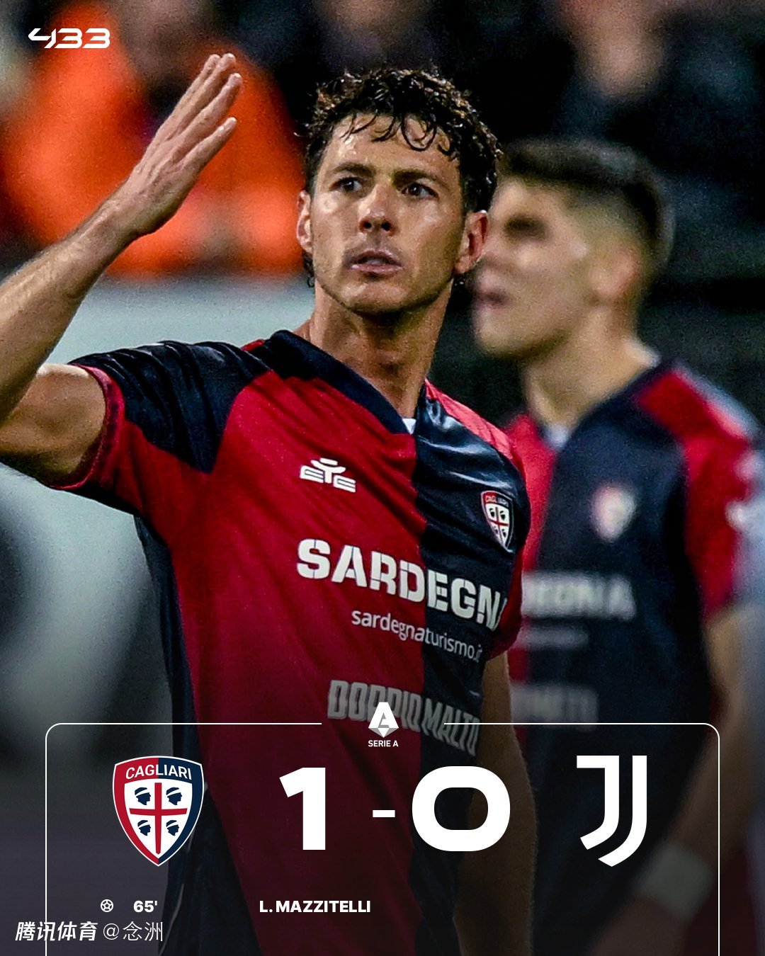 尤文客场0-1卡利亚里,VAR取消尤文点球,米雷蒂失良机,卡利亚里门将卡普里莱稳定发挥屡献扑救,马齐泰利破门,伊尔迪兹中柱。