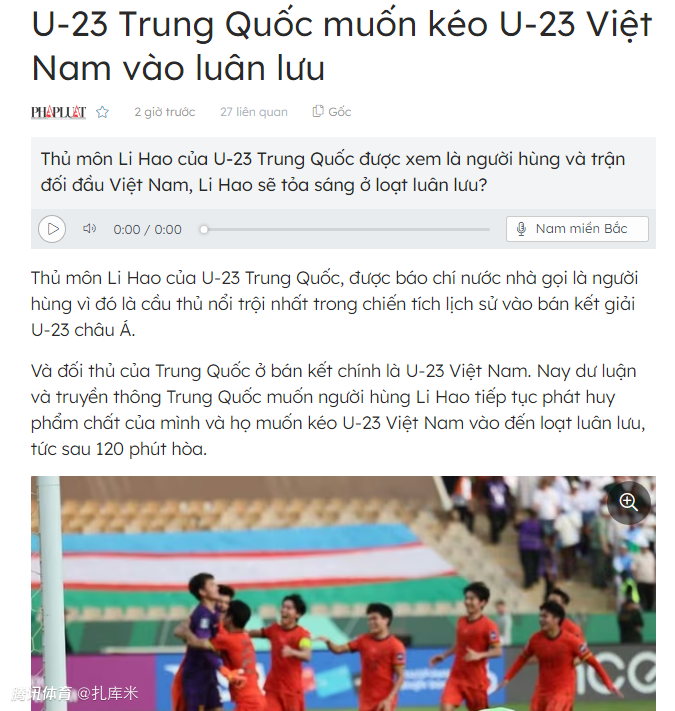 U23亚洲杯半决赛,中国队将对阵越南队。赛前,越南媒体表示,越南队的攻击力强于中国队,中国队肯定希望再次将比赛拖入点球大战。