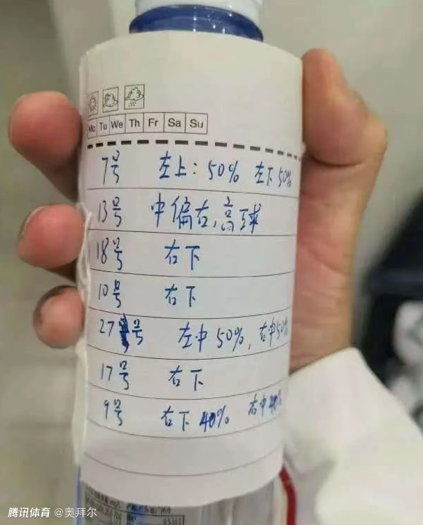 U23国足这一次有备而来,在水瓶上贴了对手球员主罚点球的特点。李昊透露“写的就是对面球员怎么踢,但其实写的都没踢”。