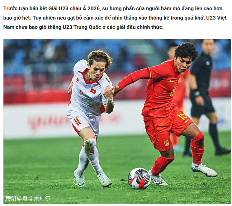 北京时间1月20日23时30分,U23国足将在U23亚洲杯半决赛里对阵越南。越南媒体指出,越南U23从未在正式比赛里战胜过U23国足。