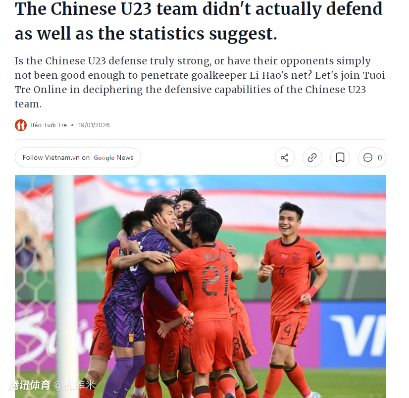 U23亚洲杯半决赛,U23国足对阵越南队。赛前,越南媒体《青年报》表示,中国队选择防守型踢法完全是进攻端缺乏好手,而且0丢球也是靠着防线堆积人数来实现。