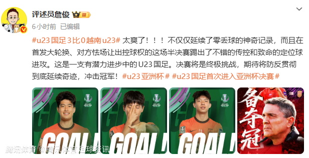 北京时间1月21日,U23亚洲杯,U23国足3-0击败越南U23,成功晋级决赛。赛后,评述员詹俊发文并评价了本场比赛。