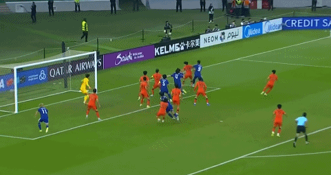 第12分钟,大关友翔禁区内右脚劲射,球击中彭啸之后飞入球网。