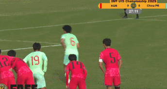 在2025年U15东亚杯第二轮,U15国足对阵韩国队。吴比乐突破制造点球,潘朝伟主罚点球破门,打入本届U15东亚杯的首个进球。