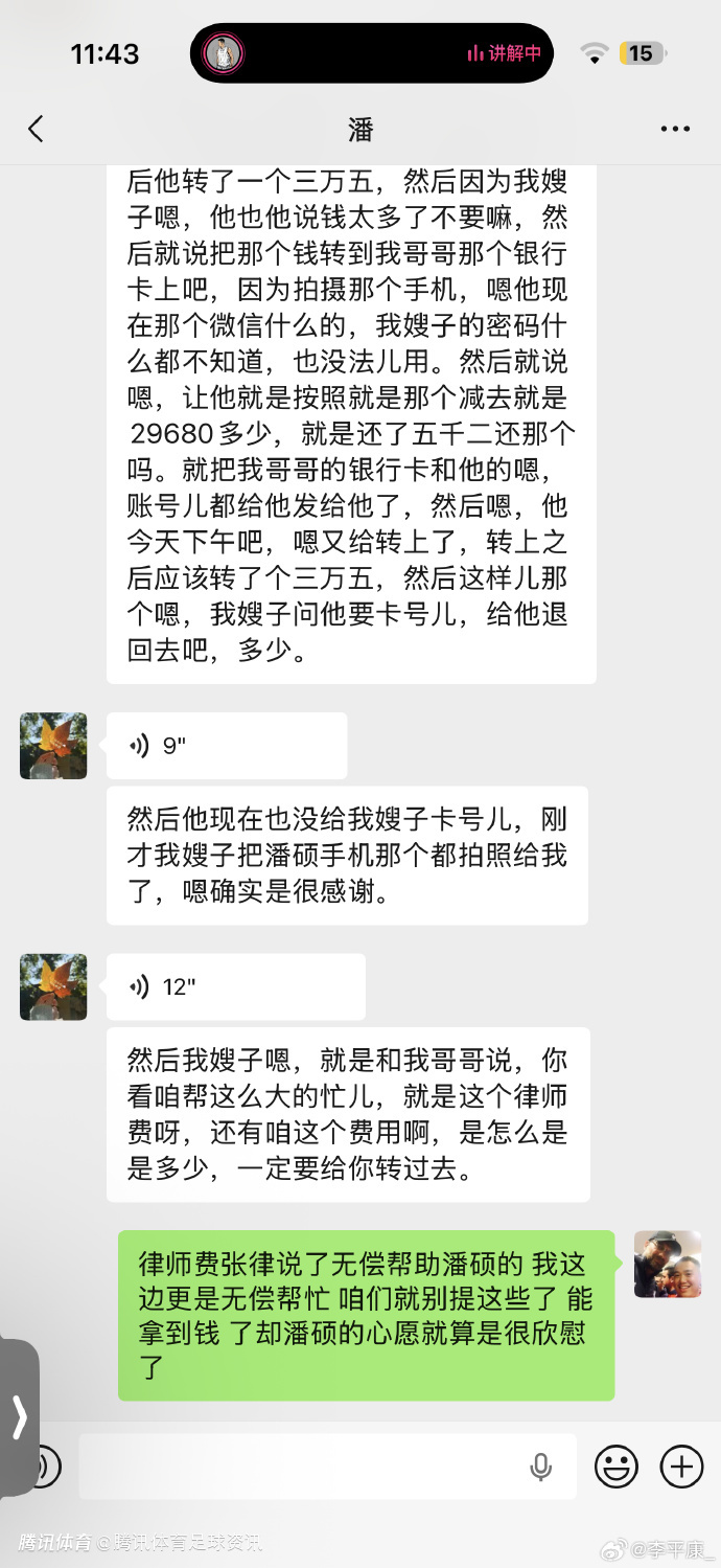 潘硕家人也委托我在微博上向所有关心他们的球迷朋友表达感谢!这件事总算了结,也希望潘硕可以安息!