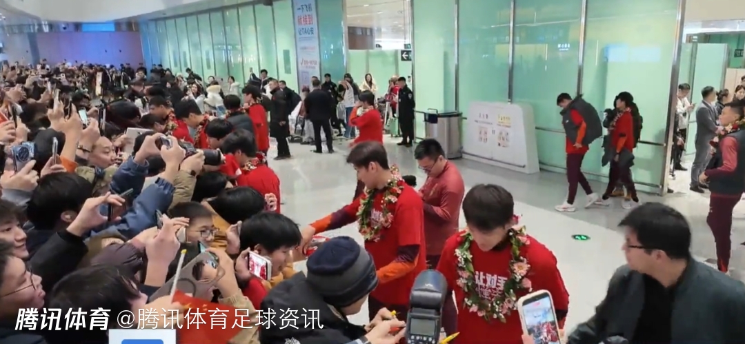 在球员们的航班还未抵达时,机场都已经是人头攒动了,各地的球迷们都来到大兴机场接机。