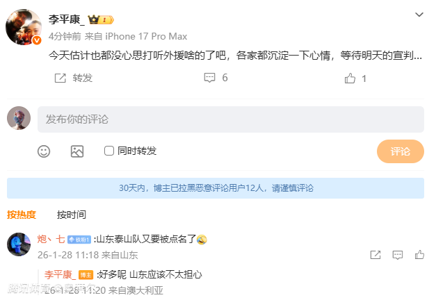 李平康周三表示,“今天估计也都没心思打听外援啥的了吧,各家都沉淀一下心情,等待明天的宣判。”随后,他还表示,“好多呢,山东应该不太担心。”