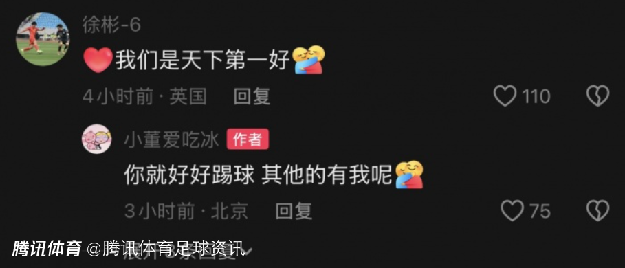而只见徐彬在评论写道:“❤️我们是天下第一好。”女友则回复:“你就好好踢球,其他的有我呢。”