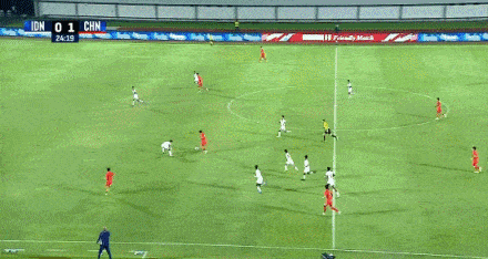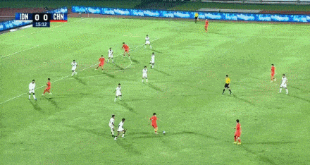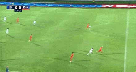 第13分钟,印尼球员凭借速度强行超车,李钧鹏奋力回防,卡住身位完成关键防守。