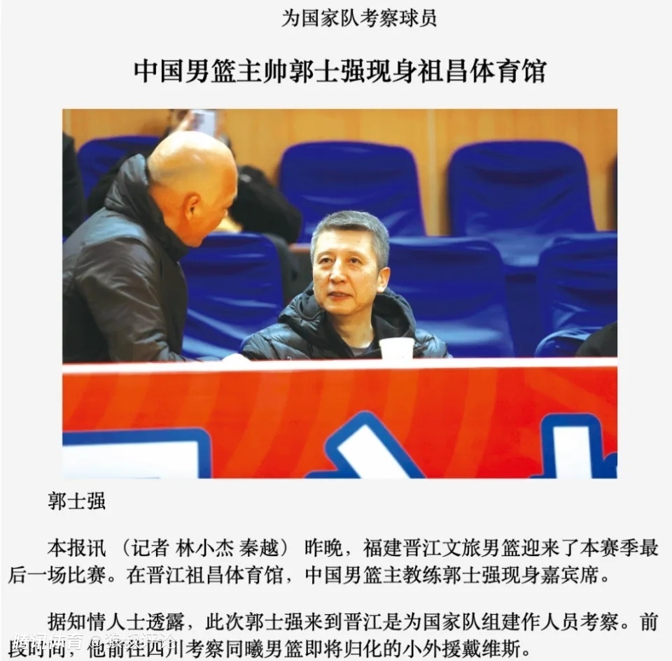 此前,郭士强接受央视采访提到归化球员问题作出回应说道:归化球员是我们需要的,现在全世界所有国家队,亚洲,南美都有归化球员,这是篮球发展趋势。被问到需要什么归化球员话题,郭士强说道,需要能打硬仗,关键比赛站出来。