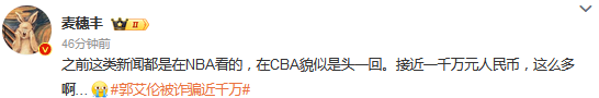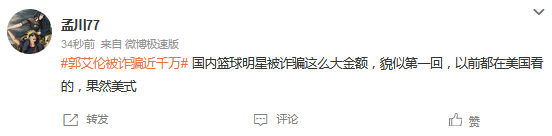 国内篮球明星被诈骗这么大金额,貌似第一回,以前都在美国看的,果然美式 。