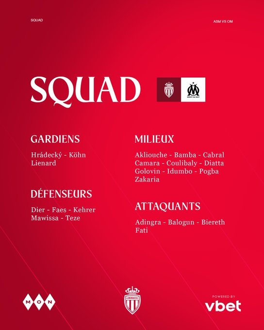 摩纳哥将在本轮的法甲焦点战对阵马赛,值得注意的是,在赛前摩纳哥公布的大名单当中,出现了博格巴的名字。