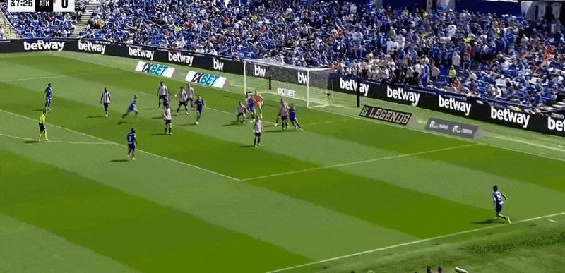 7’贝尔奇切左路传中,古鲁泽塔后点抽射踢中了空气
