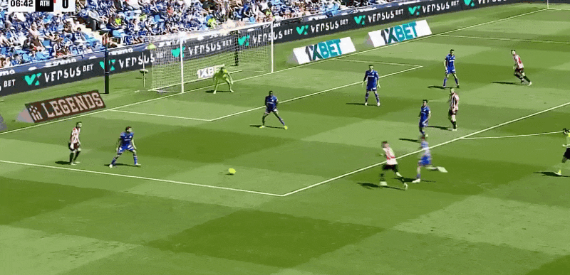 39’伊尼亚基·威廉姆斯反击中直塞,裁判完成封堵后吹停比赛
