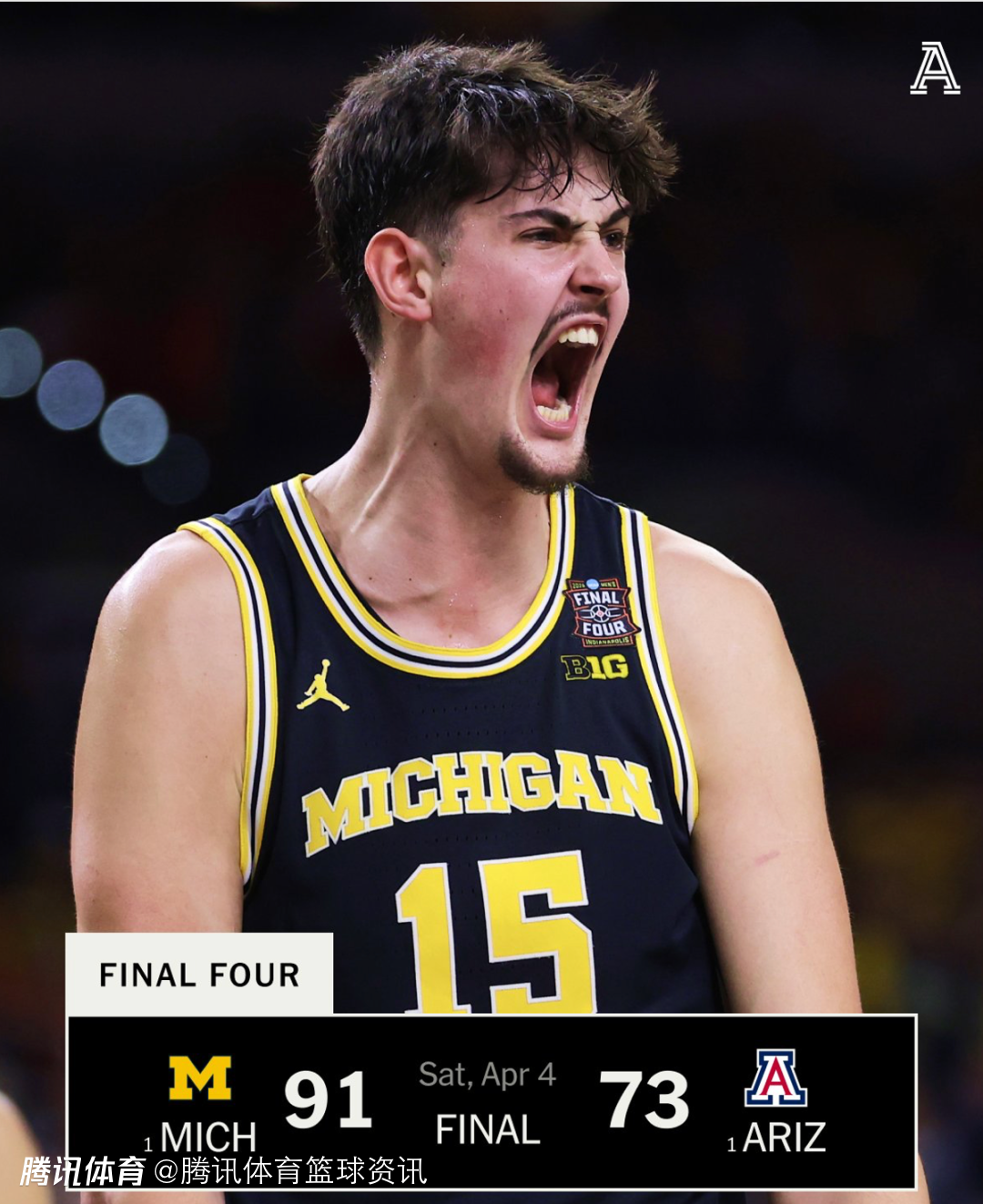 北京时间4月5日,NCAA终极四强赛,康涅狄格大学以71-62击败伊利诺伊大学,密歇根大学以91-73击败亚利桑那大学(自2018年再度进入NCAA决赛),这样一来,康涅狄格大学和密歇根大学会师NCAA决赛,康涅狄格大学将冲击四年三冠神迹(2023和2024年都是冠军),决赛将于4月7日打响。