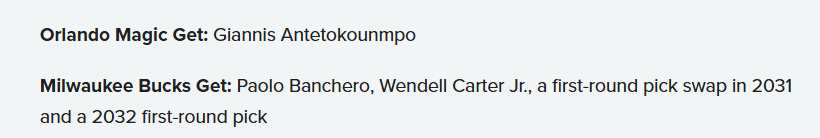 雄鹿得到:班凯罗、小温德尔-卡特、2031年首轮签互换权、2032年首轮签