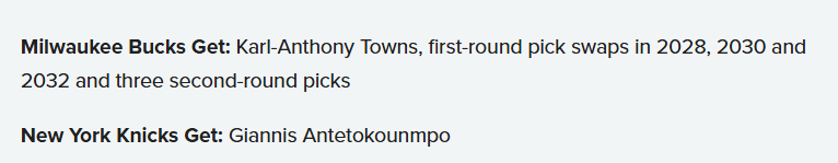 雄鹿得到:唐斯、2028/2030/2032年首轮签互换权、3个次轮签