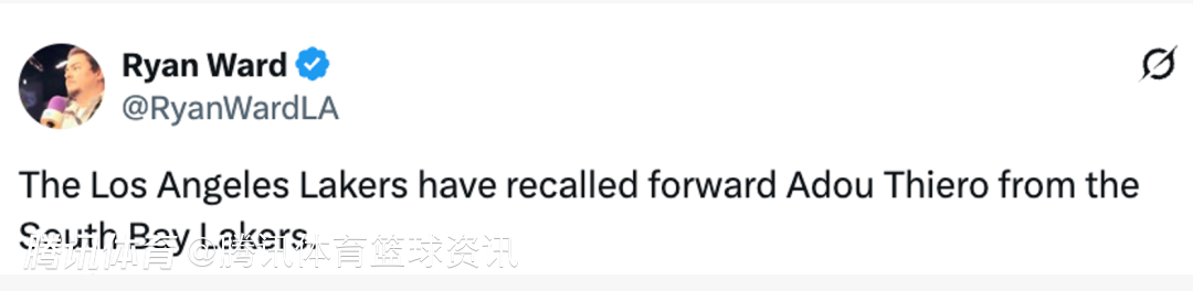 北京时间4月6日,湖人官方宣布,从南湾湖人召回蒂耶罗。今天湖人和南湾湖人均有比赛,南湾湖人将在北京时间4月6日早上9点在G联盟季后赛对阵斯托克顿国王,湖人则是在北京时间7点30分对阵独行侠。