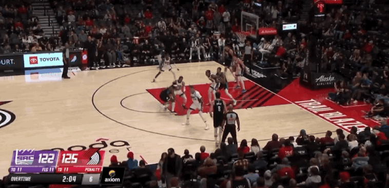 埃利斯和威少连续造成犯规5罚全中,国王打出一波进攻高潮,关键时刻夏普2罚全丢,阿夫迪亚出现致命失误。开拓者只能采取战术犯规,想要和对手拼点球,威少2罚全中,国王以14-0的进攻压制,在最后13.9秒追分到1分。阿夫迪亚2罚1中,但是国王没能把握关键篮板,克林根2罚1中,给到国王再次扳平比分机会。德罗赞三分命中扳平比分,格兰特错失绝杀三分,双方进入加时。