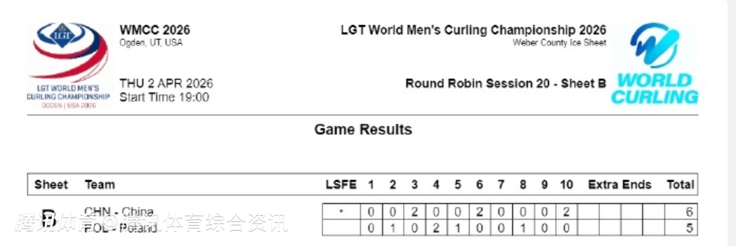 北京时间4月3日,男子冰壶循环赛,中国队最后一场6-5击败波兰,以6胜6负排名第7完赛。