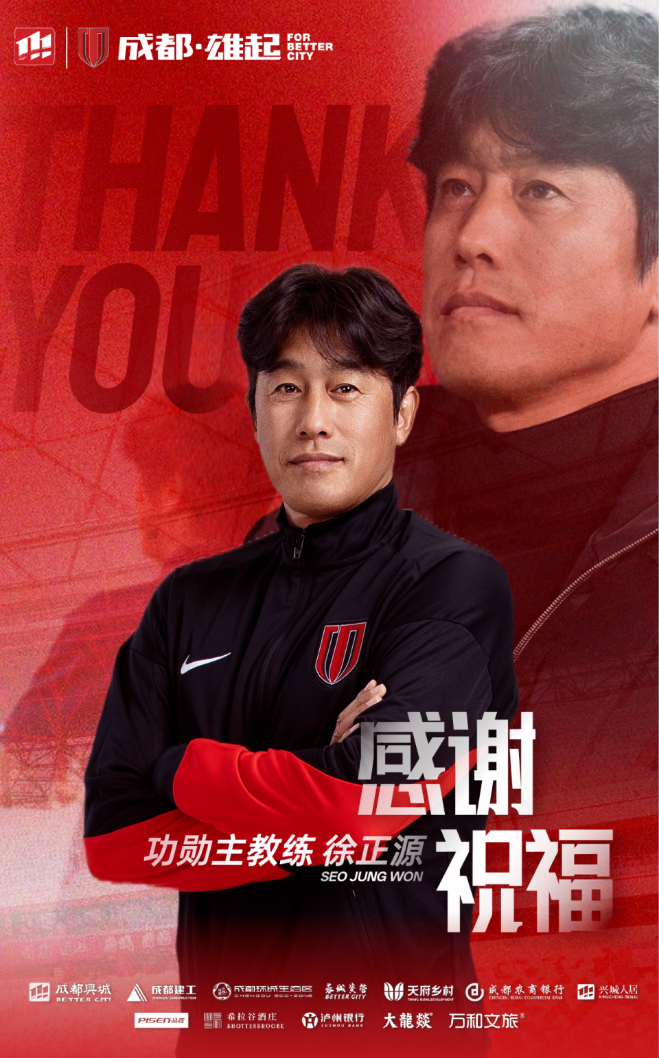 记者鲁蜜报道12月18日,徐正源55岁生日的第二天,他与蓉城间的续约风波,终于迎来了大结局。蓉城足球俱乐部正式发布公告,确认徐正源不再担任一线队主教练职务。这位被俱乐部授予“功勋主教练”称号的韩国人,用5年的时间将蓉城从中甲带到中超,再带向亚洲赛场,打出了一场场经典战役,最后以“自愿放弃3年续约主动权”的方式体面退场,为一段载入史册的合作画上了句号。